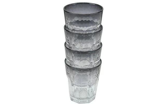 Ein stilvolles Set aus Wein- und Limonadengläsern. Das Set hat einen Rauch-Effekt, der ihm ein luxuriöses Aussehen verleiht. Darüber hinaus sind die Gläser aus stabilem Kunststoff gefertigt. Das macht sie kratzfest und leicht. Sie sind auch spülmaschinenfest.