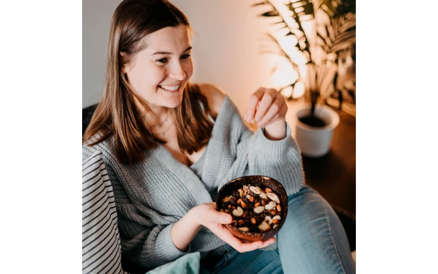 Die Schalen sind vielseitig verwendbar: als Müslischalen, Salatschüsseln, Snackschüsseln oder für Smoothie Bowls und Buddha Bowls. Superleicht und praktisch – für mehr Nachhaltigkeit im Alltag zu Hause & auf Reisen beim Camping. Ein echtes Naturprodukt aus 100 % Kokosnuss – lebensmittelecht, geschmacksneutral, vegan und kompostierbar. Verpackt ist das Kokosschalen Set in einem umweltfreundlichen Naturkarton, der einfach im Papiermüll recycelt werden kann. Nicht für kochendes Wasser, Spülmaschine, Mikrowelle oder Eisfach geeignet.