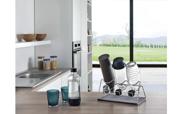 Abtropfgestell für mehrere Flaschen und Deckel auf einmal zu trocknen, dazu ein Mikrofasermatte mit dabei.