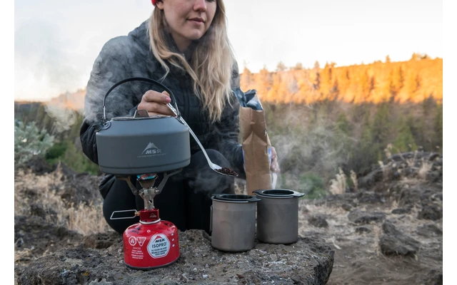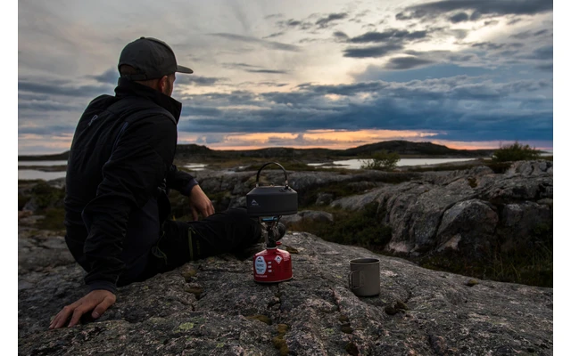 Dieser besonders leichte Teekessel aus Aluminium besticht durch seine Präzisions-Gießtechnologie und erzeugt dichten, gezielten Wasserdampf, der genau richtig ist, um die perfekte Tasse Kaffee zu erzeugen. Auch für Trinkgefäße mit kleiner Öffnung geeignet. Dank der tropfenfreien Tülle bleibt das Geschirr sauber. Der Deckel rutscht beim Gießen nicht weg und lässt sich dennoch einfach abnehmen. Der Griff bleibt ebenfalls aufrecht, vom heißen Kessel weg gerichtet und ist nicht zu heiß zum Anfassen. Die breite Öffnung des Teekessels erleichtert das Reinigen und ermöglicht das Verstauen eines kleinen Kochers und anderer Dinge im Inneren. Besonders für Grammzähler unter den Abenteurern geeignet, denn der Kessel ist ideal zum Aufkochen von Tütennahrung.