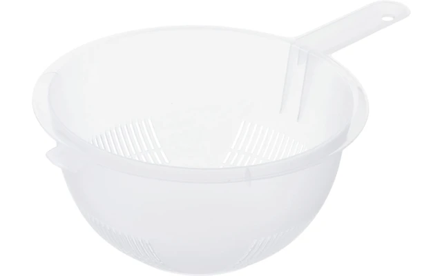Das Sieb RONDO von Rotho ist ein Allrounder, der Ihnen die Küchenarbeit spürbar erleichtert. Das spülmaschinenfeste Abtropfsieb besitzt ein geringes Eigengewicht und ist deshalb handlicher als schwere Siebe aus Edelstahl. Mit dem Sieb aus der RONDO-Serie gießen Sie heißes Kartoffelwasser ab, ohne dass Sie umständlich den Topfdeckel schräg auf dem Kartoffeltopf festhalten müssen. Auch das Abtropfen von Gemüse oder gewaschenem Salat geschieht mit dem stabilen Küchensieb ganz mühelos. Denn das Sieb RONDO lässt sich dank der Haltegriffe am Topf oder Spülbecken befestigen und Sie haben beide Hände frei.